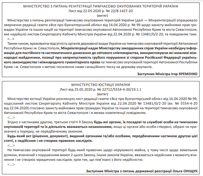 Ще на початку квітня ми опублікували відкрите звернення до української влади із закликом вжити всіх можливих заходів для захисту майнових прав громадян України (див. газету “Все про бухгалтерський облік” № 32 за 2020 р.).