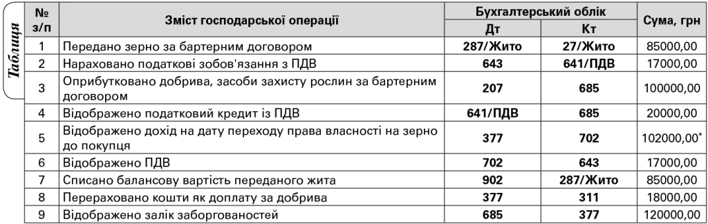 Бухгалтерський облік операції обміну зерна на агрохімікати